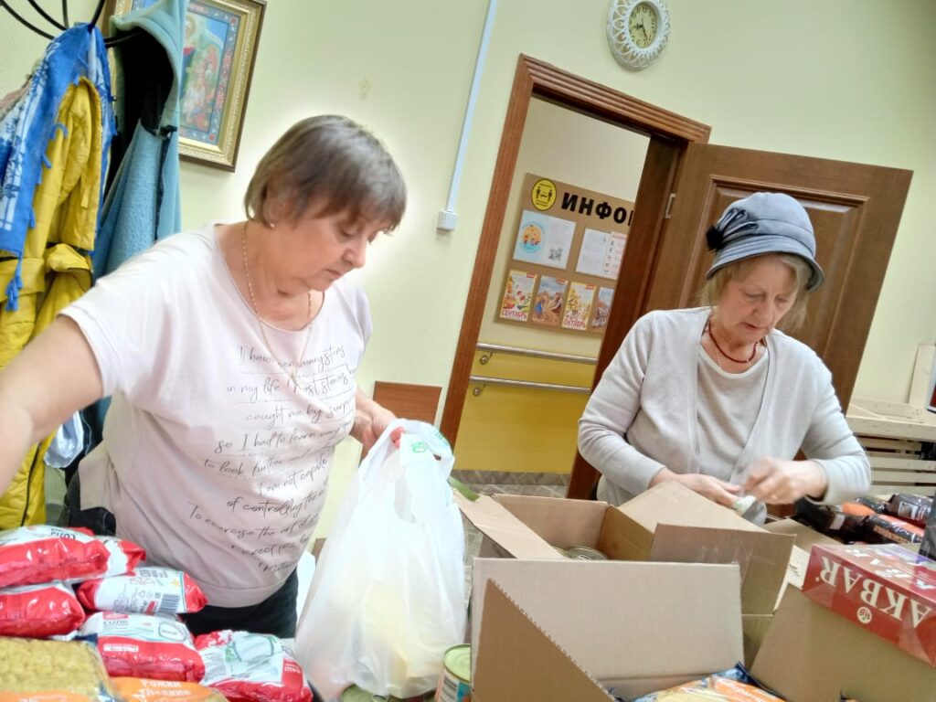 Волонтеры волонтерского отряда БГО «Конек Огонек» — Терешко Л.Ю. , Арутюнян С.С. и Хабарова Т.М. составили списки нуждающихся, приняли и проверили доставленные продукты по списку, сформировали продуктовые наборы, в которые вошли — мясные и рыбные консервы, сгущенное молоко, крупы – гречка, рис, геркулес, макаронные изделия (вермишель, макароны, рожки), мука, сахар, соль, подсолнечное масло, чай, печенье, вафли. Помощь по доставке довольно тяжелых пакетов (более двенадцати килограмм) инвалидам, оказали волонтеры отряда «Конёк Огонёк» — Кострыкин А.А., Карцев А.В., Кузнецов А.С., Кузьмина Н.В., Филатов С.
