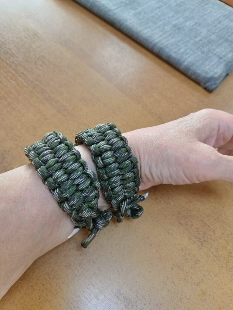 С весны 2025 года, по просьбе наших подопечных штурмовиков, находящихся в зоне СВО, члены Бронницкой городской организации инвалидов ВОИ начали плести тактические браслеты.