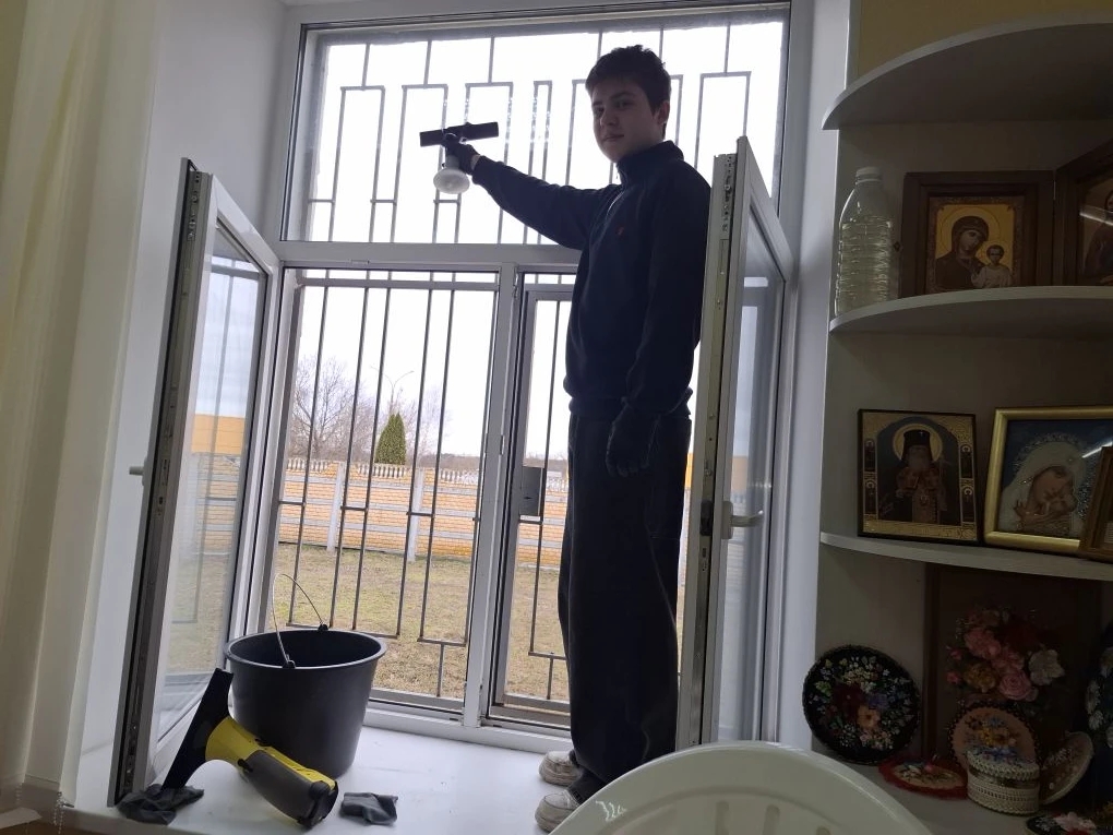 Несмотря на переменчивую, дождливую и холодную погоду и напряженный учебный график, ребята с преподавателем английского языка Сарычевой С. А. нашли время и 6 апреля 2026 г. пришли в организацию инвалидов ВОИ со специальными средствами для мытья окон и помыли окна в помещении организации. А еще ребята принесли сладости (печенье, чай). Очень приятно, что молодые люди, ученики первого курса А-ДК, помогают нуждающимся, тратят время и силы на добрые дела.