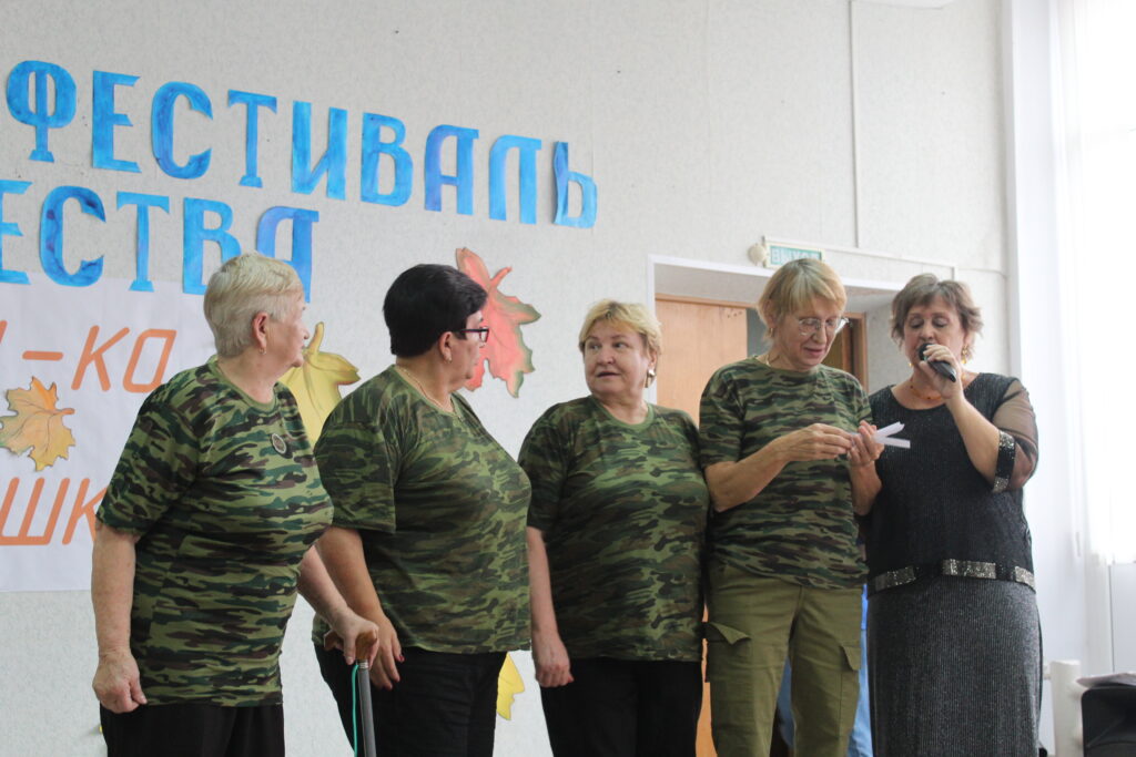 Только-только закончилось представление пятой команды, а на сцену, по приглашению ведущей, опираясь на скандинавские палочки, выходят «Бурановские бабушки» — танцевальная группа «Девчата» адаптивного клуба «Ахиллес» (группа поддержки Ивантеевской команды) с пародийной композицией «Снова 18».