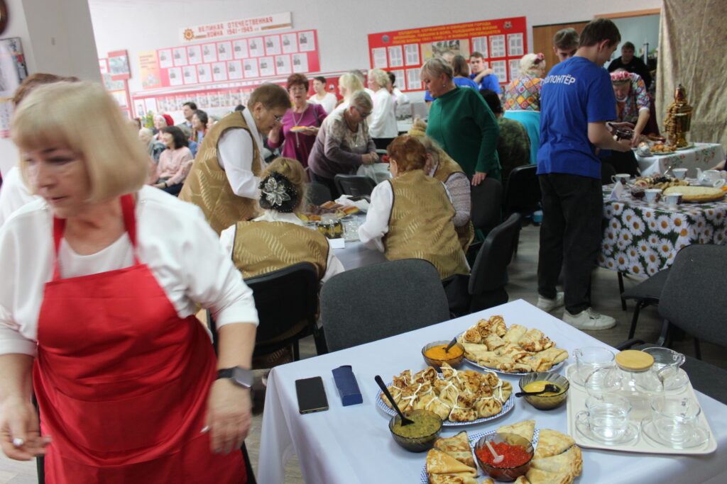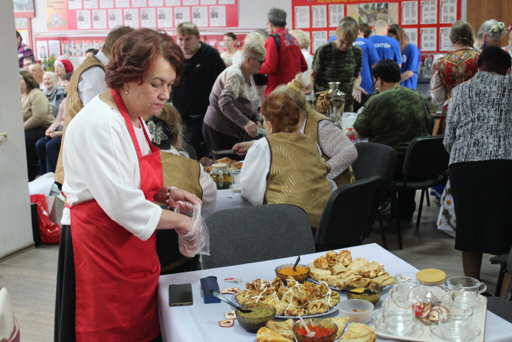Фестиваль не ждет, конкурсная программа продолжается. И вот он – «Кулинарный поединок – гость на пороге». Удивительный конкурс, когда каждая команда готова угостить своими кулинарными шедеврами всех гостей, но, в первую очередь, конечно, жюри! Наша команда напекла сто блинов и приготовила начинку на любой вкус! А чай с бархатцами – просто чудо!