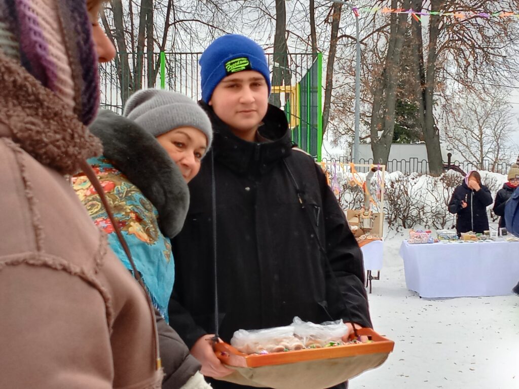 Наряженные в коробейников молодые люди (инвалиды детства 18+) Севада, Михаил и Артем в красивых лотках разносили баранки, сушки, конфеты и угощали празднующих Масленицу! В парке звучала веселая музыка, на сцене выступали творческие коллективы г.о. Бронницы. Мы веселились вместе со всеми, водили хороводы, пели частушки.